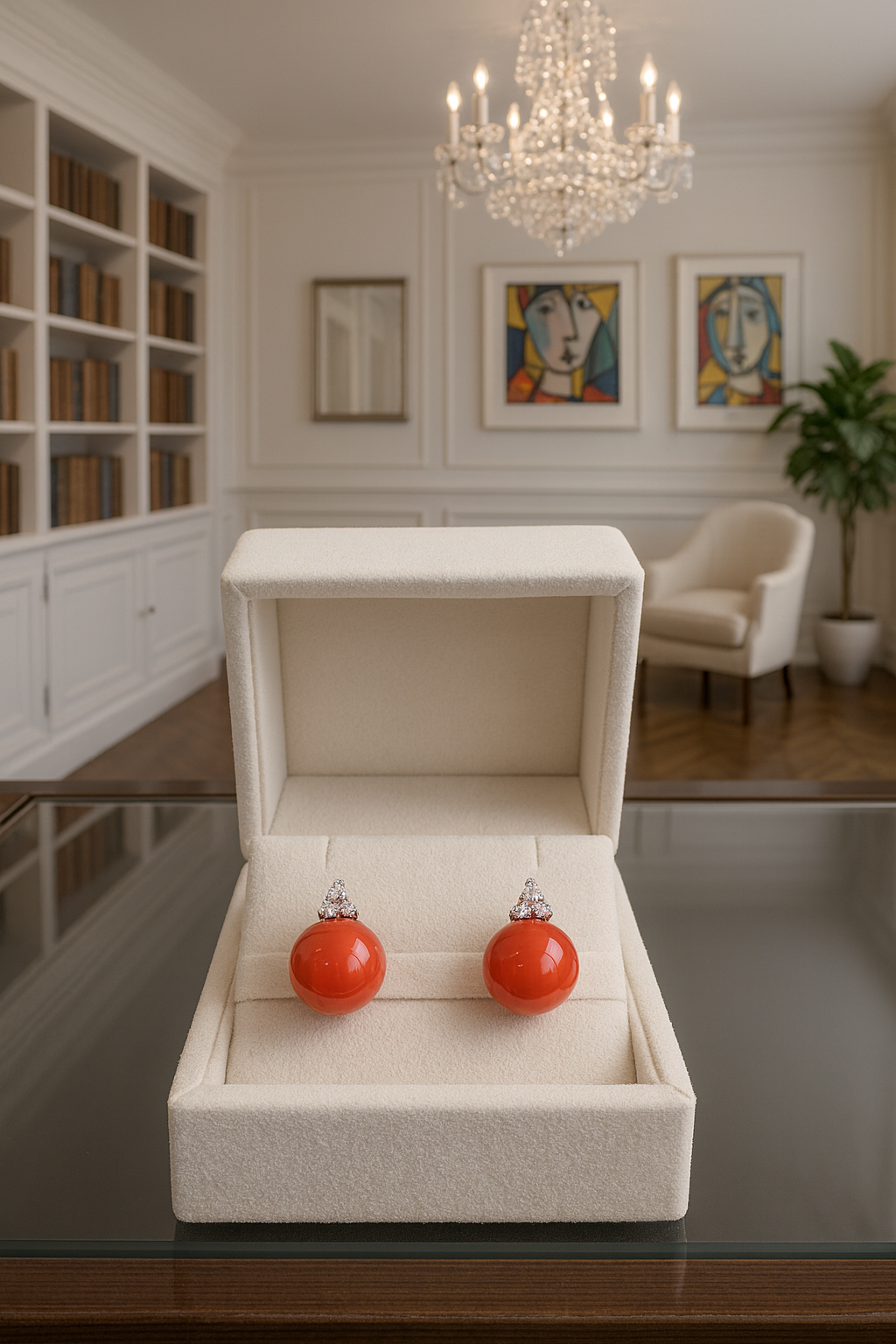 Orecchini in oro con corallo rosso del Pacifico e diamanti
